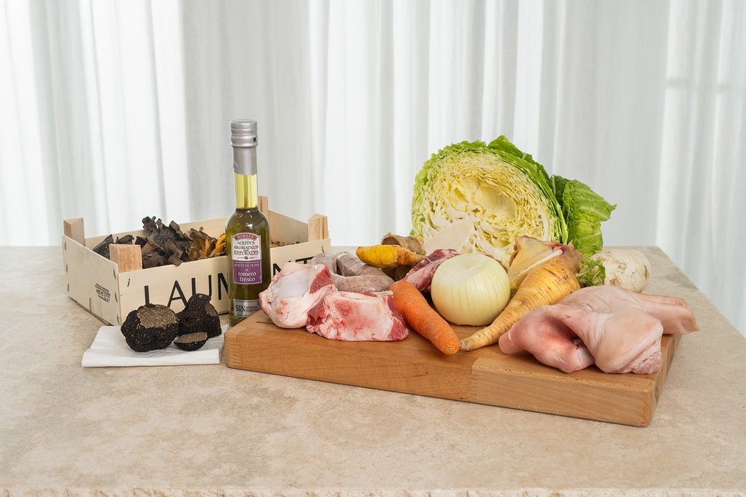 Ingredients for the reimagined escudella with mushrooms, truffle and its terrine