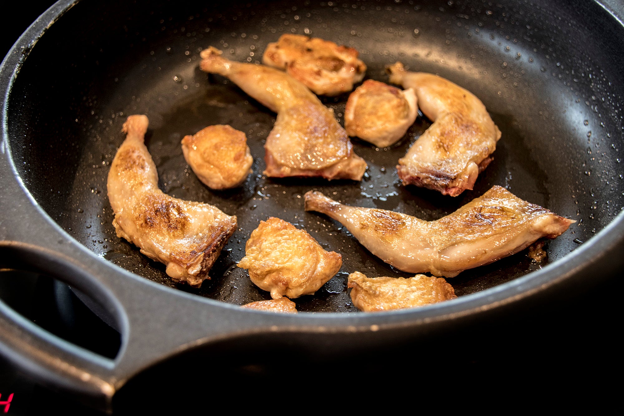 5. After a few minutes, add the quails and cook for 2 minutes over a medium heat.