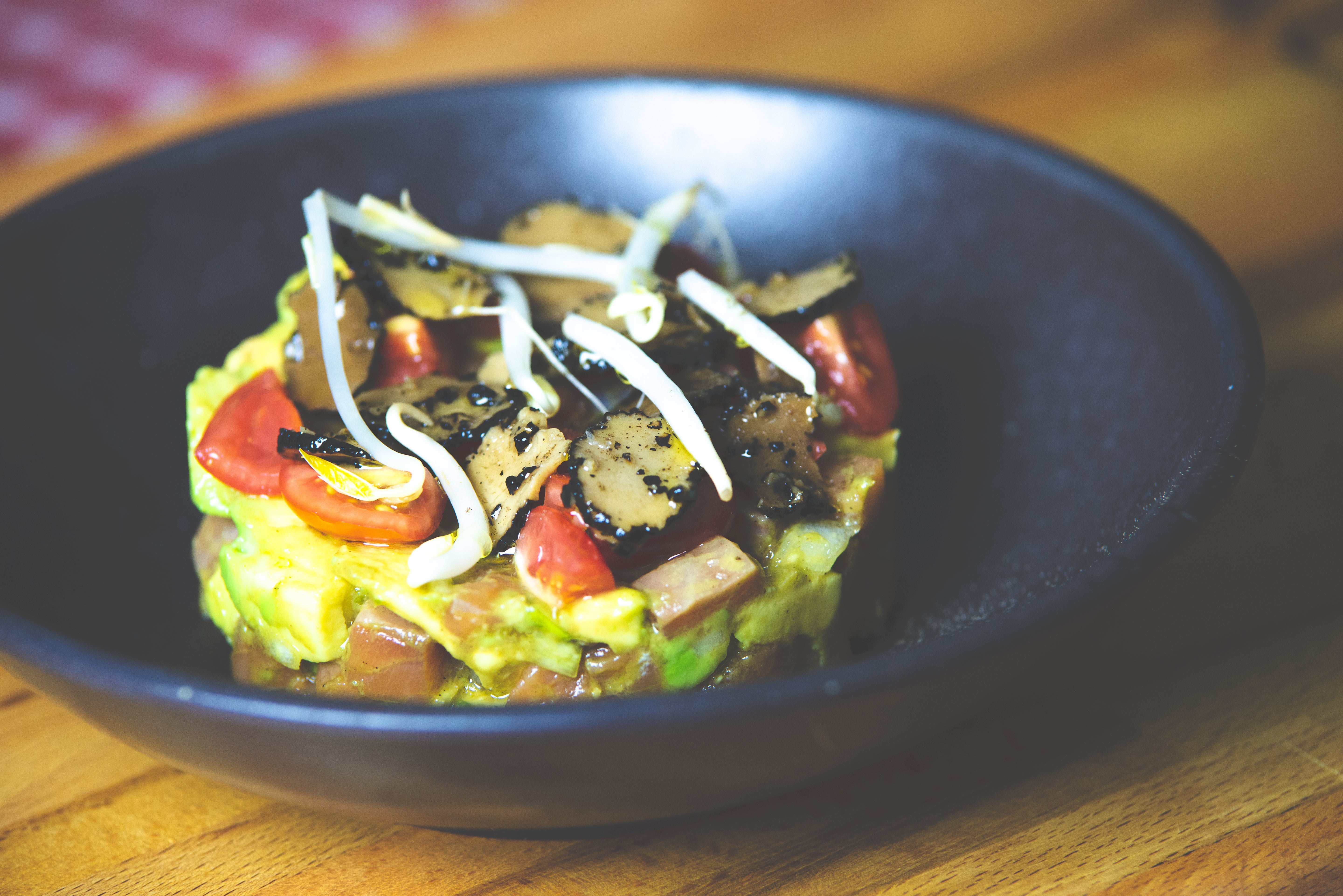 Ingredients for the salmon tartare with avocado, cherry tomatoes & summer truffle carpaccio