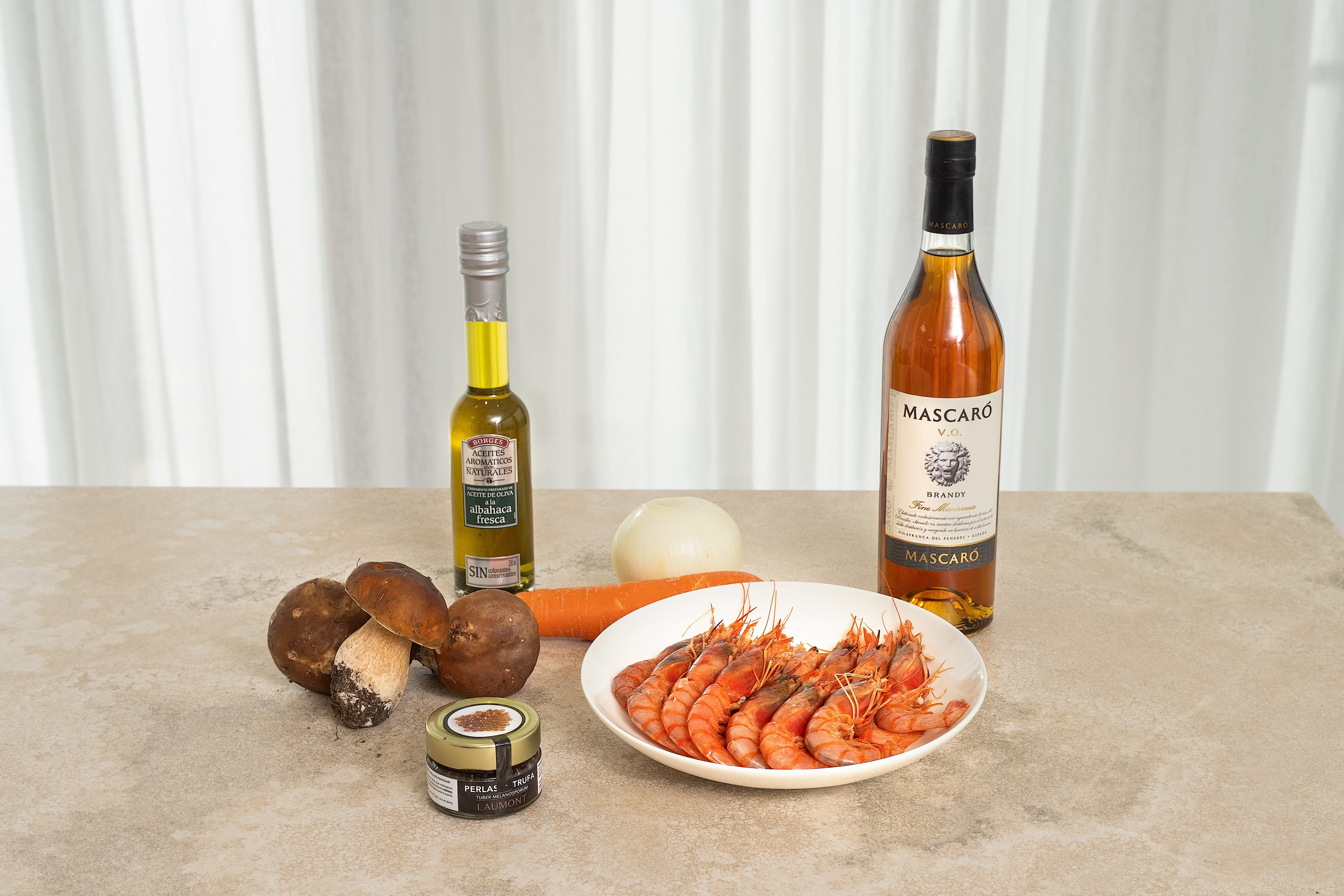 Ingredients for the shrimp and boletus fritter with saffron aioli
