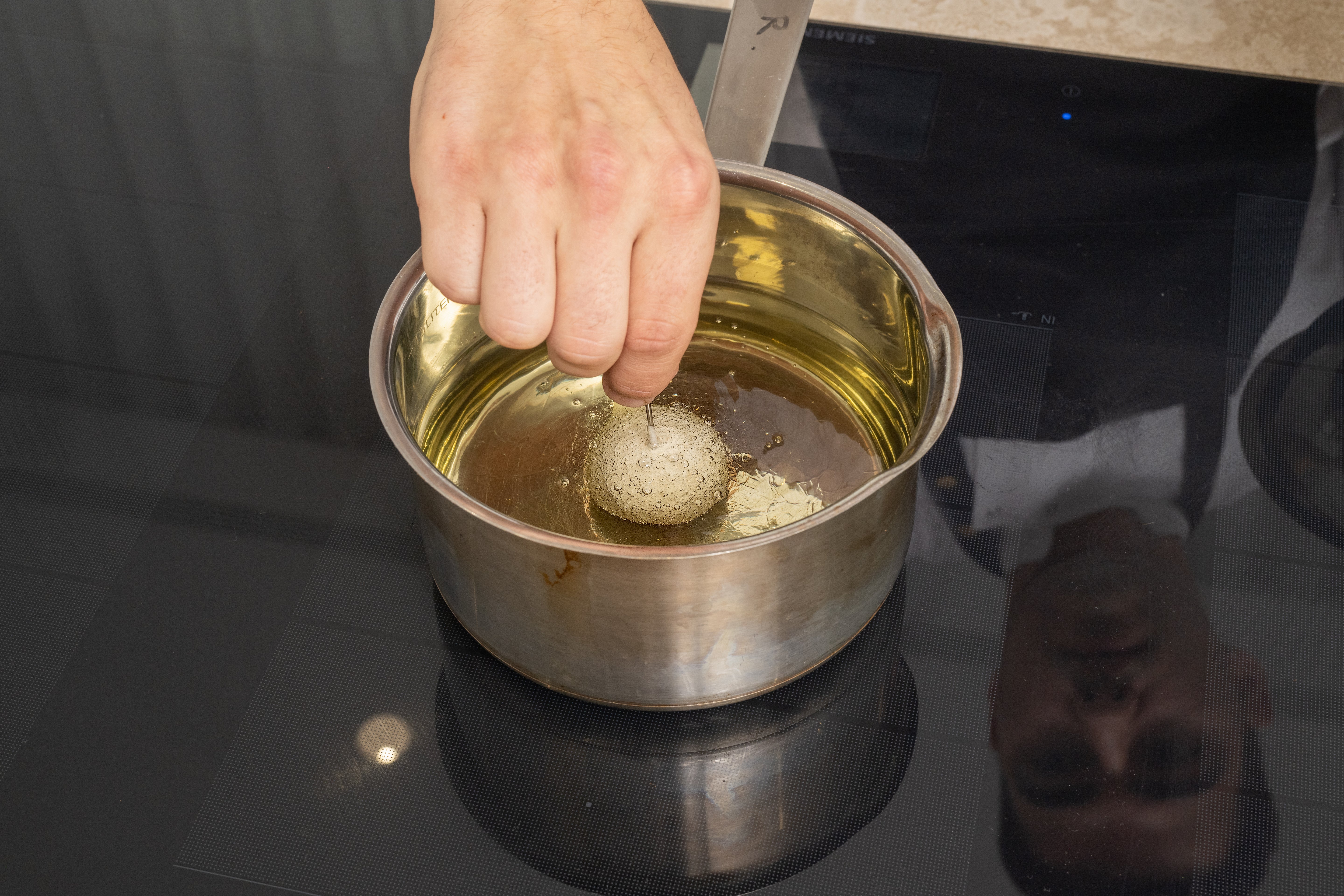 Step-by-step to make the shrimp and boletus fritter with saffron aioli