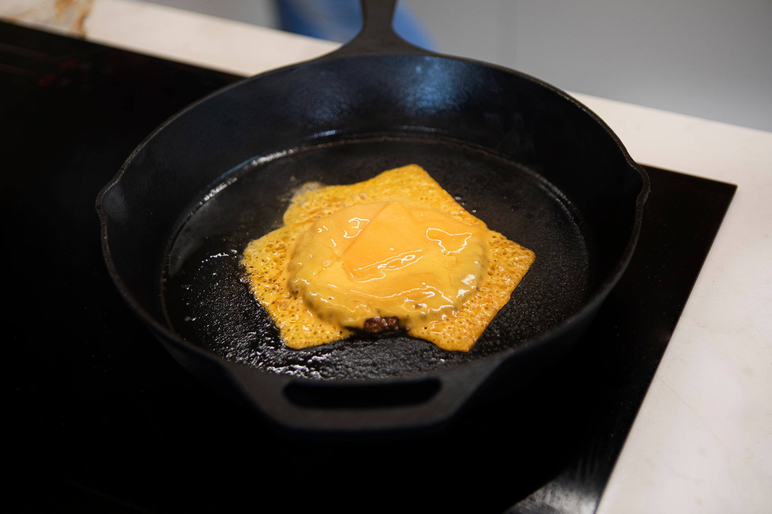 5. Before removing the burgers from the heat, place a slice of cheddar cheese on top so it melts.