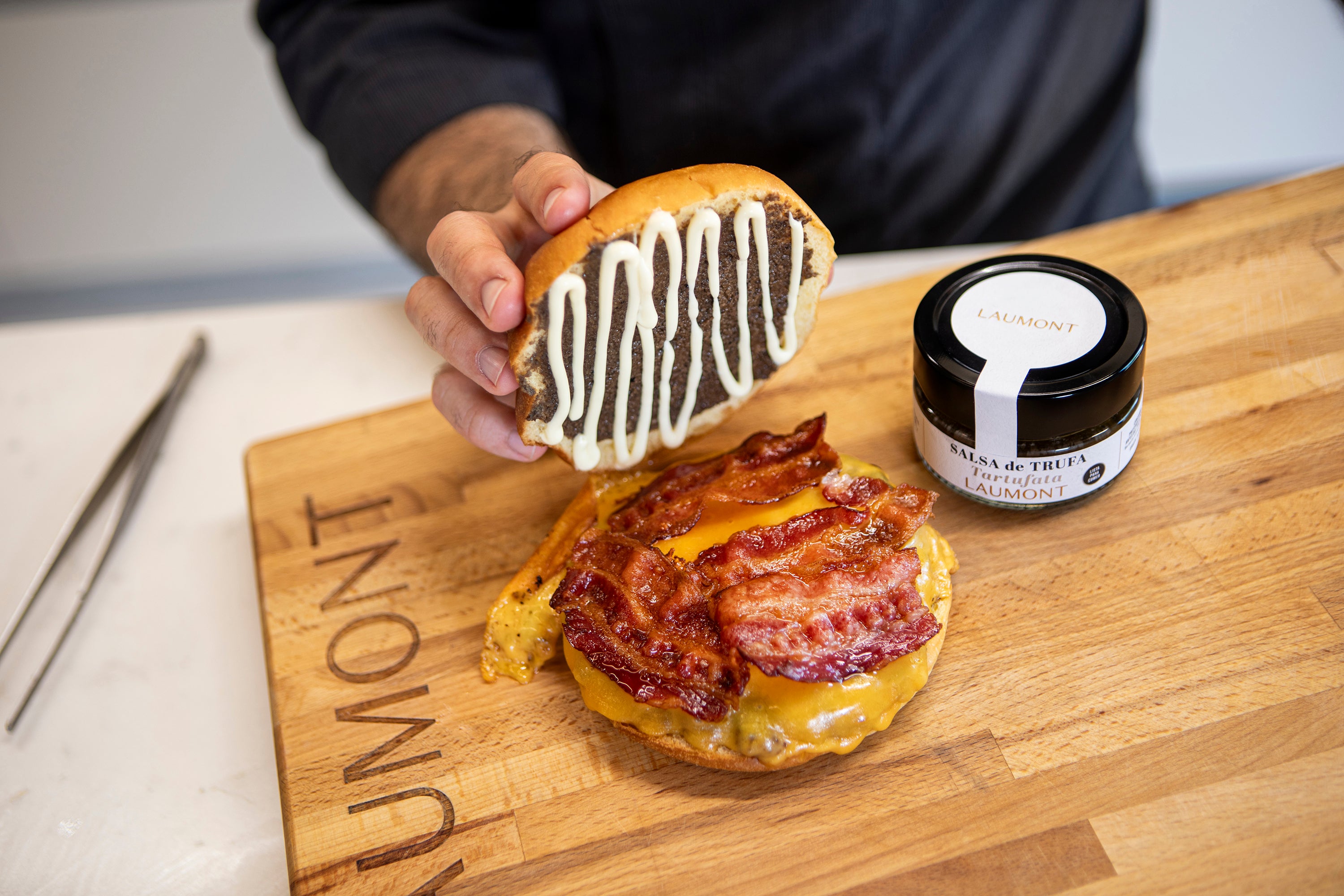 The Smash Burger with tartufata sauce is a gourmet take on the classic American burger, elevated by the intense flavor of truffle. Griddled smashed beef is paired with crispy bacon, melted cheddar cheese, and an irresistible blend of mayonnaise and Laumont tartufata sauce, creating a perfect balance of crunch, creaminess, and umami. Ideal for burger lovers with bold taste.