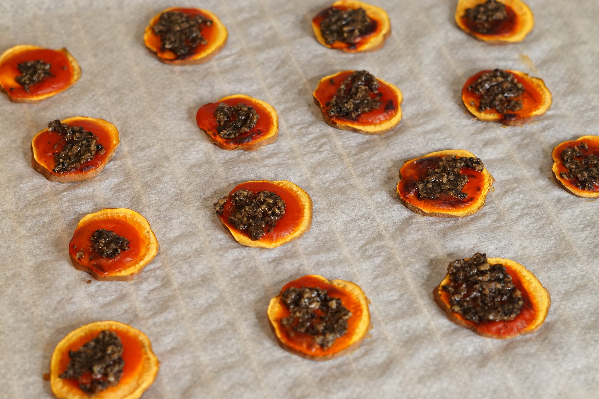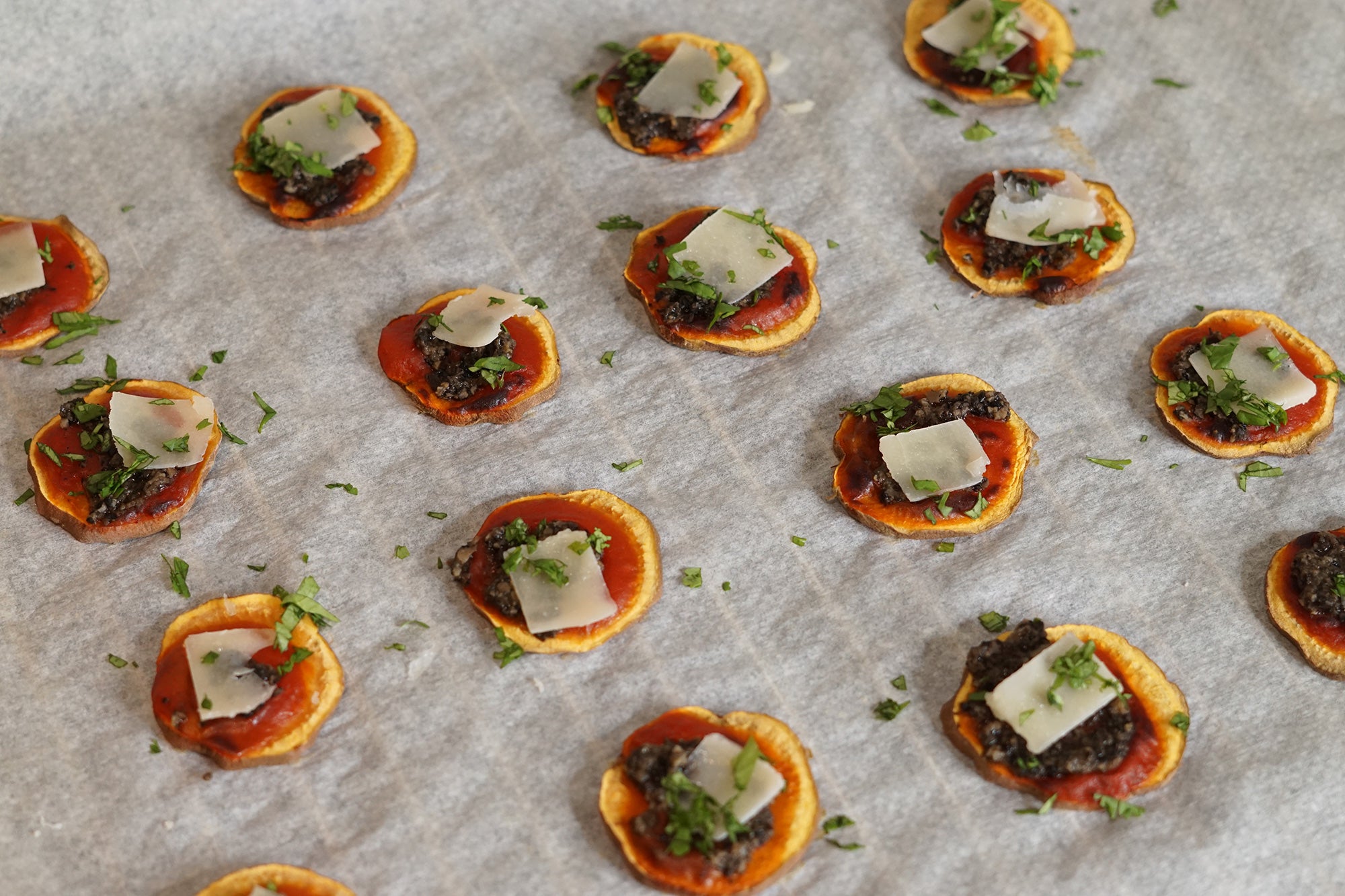 Elegant vegetarian bites that pair the caramelized sweetness of roasted sweet potato with the earthy richness of truffle and nutty Grana Padano. Perfect as an appetizer or sophisticated hors d’oeuvre, these truffle-kissed bites combine simple ingredients with gourmet flair. Serve warm and impress your guests with minimal effort.
