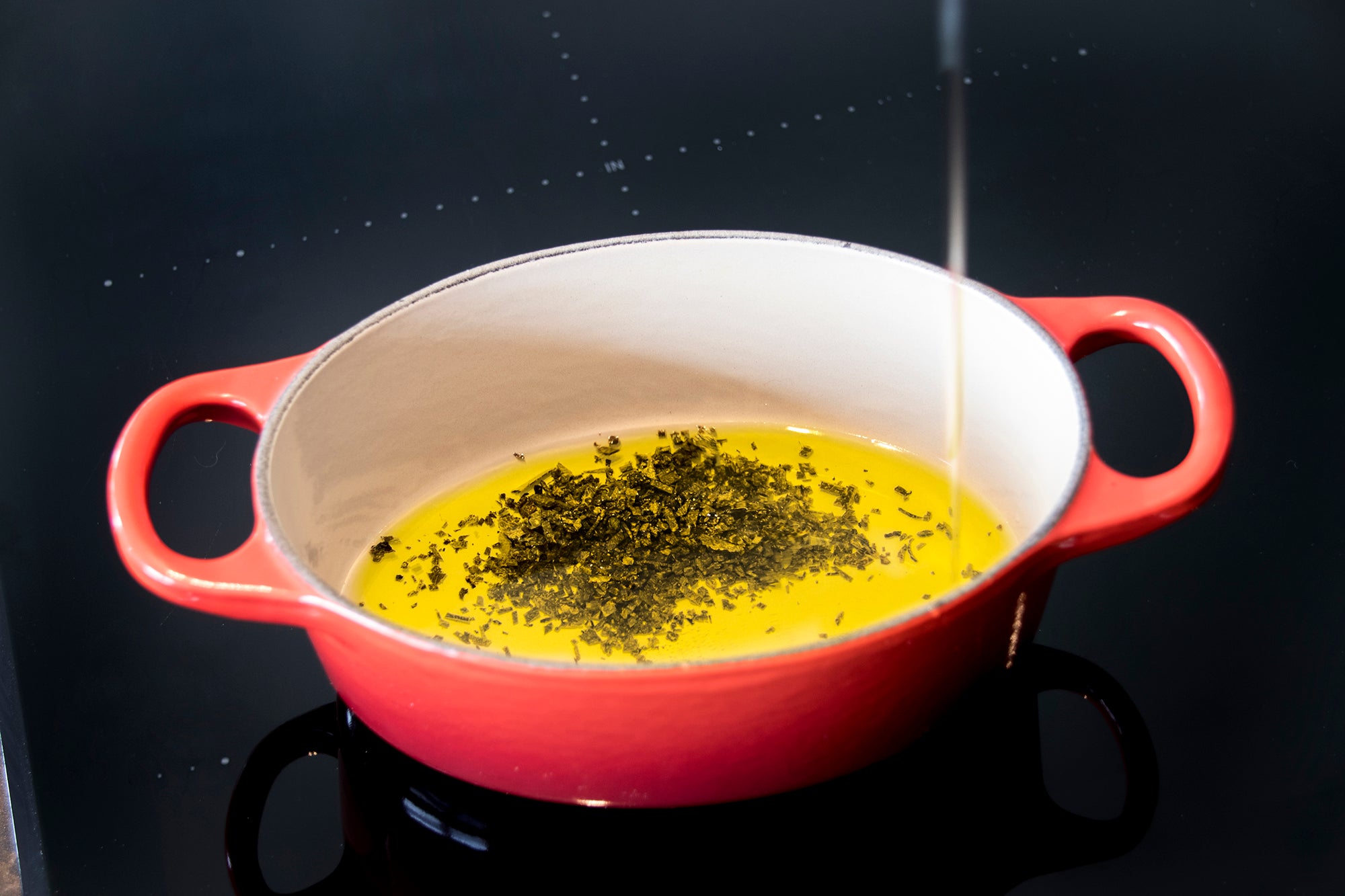 This homemade truffle oil, infused with Laumont black truffle, is a luxurious finishing touch for any gourmet dish. Its intense aroma and subtle elegance enhance pasta, eggs, risottos, purées, and more — a perfect way to elevate your culinary creations.